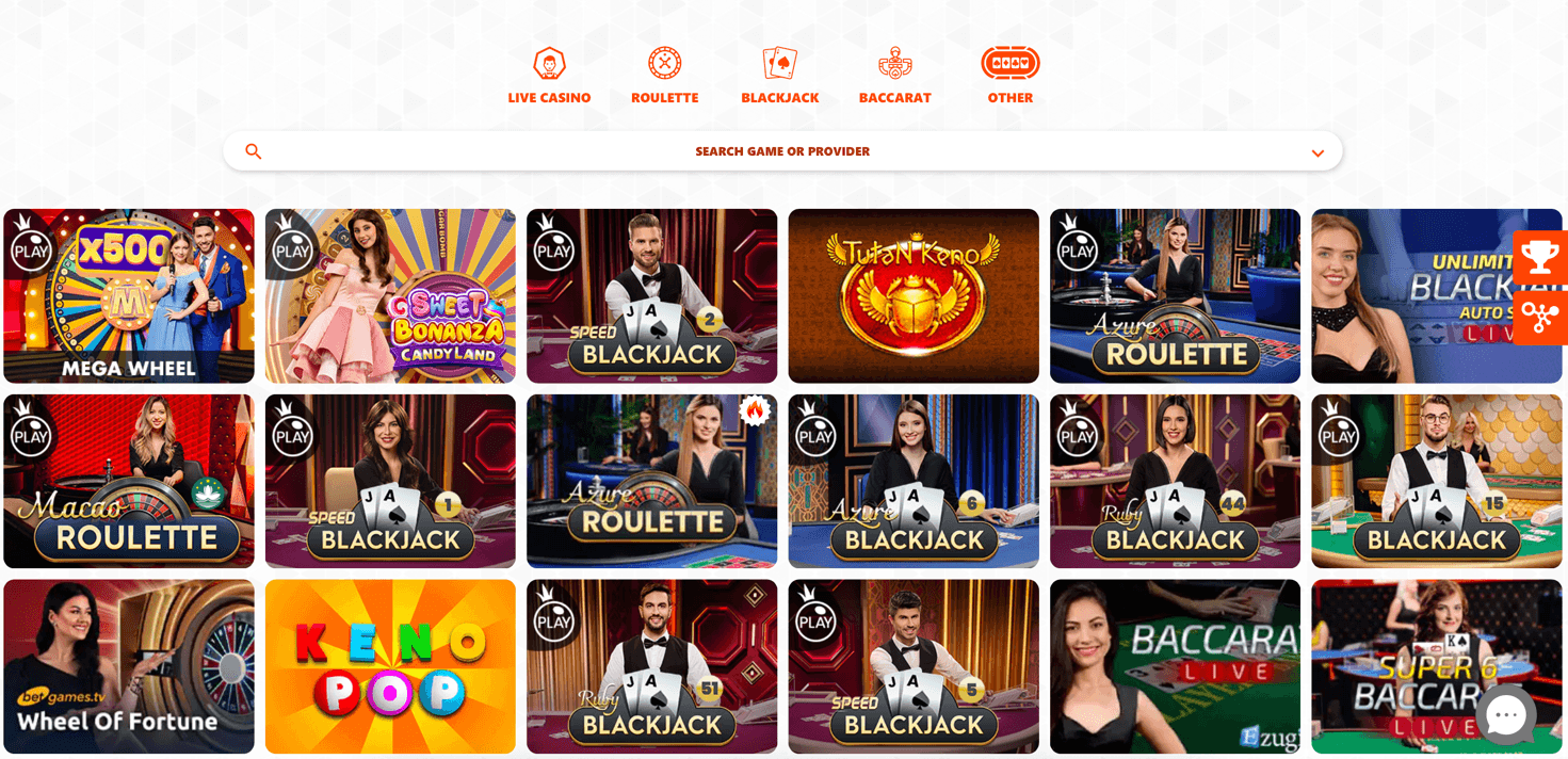 If you’re into classic card games, you can hit up the table section where you can indulge in some fast-paced betting action across the virtual felt. The choice of tables on offer includes many versions of blackjack, baccarat, roulette, and poker, with plenty of other niche games too. You can place bets in the standard versions or get a little adventurous and try out some of the more unique variations.