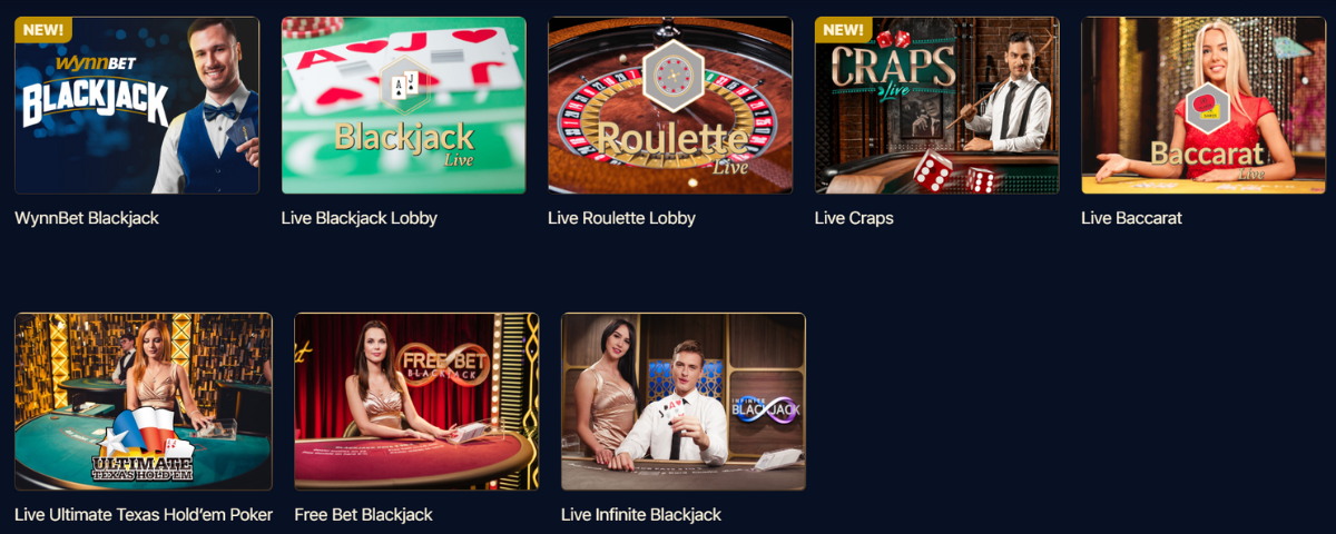 At WynnBet there is a small live casino that offers blackjack, roulette, poker and baccarat.